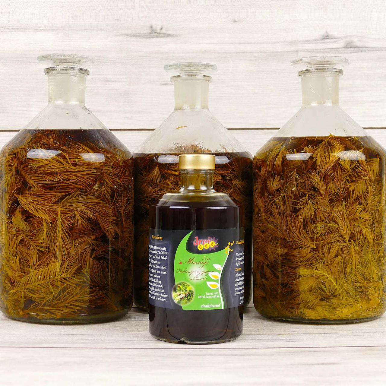 In Olivenöl angesetzt, werden die Spitzen nach den Lehren von Jakob Lorber in die Sonne gestellt. Mindestens 120 Sonnenstunden benötigt die Essenz um als Sonnenheilmittel zu gelten. Die Pflanzen in dem Öl speichern die Sonnenlichtphotonen und erzielen so eine wohltuende Wirkung.