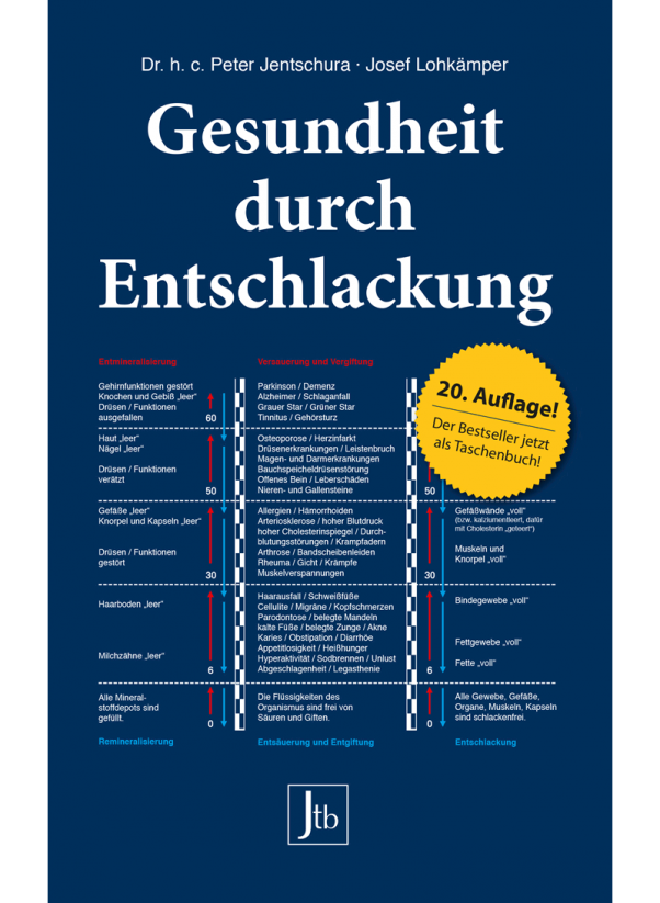 Peter Jentschura und Josef Lohkämper ist es gelungen, ein völlig neues Entschlackungs-System zu entwickeln. Danach verläuft die neue, künftige Form der Entschlackung in drei Stufen: Schlackenlösung, Neutralisierung der daraus hervorgegangenen Gifte und Säuren, Ausscheidung bzw. Auslaugung der schädigenden Stoffe über die Haut.
