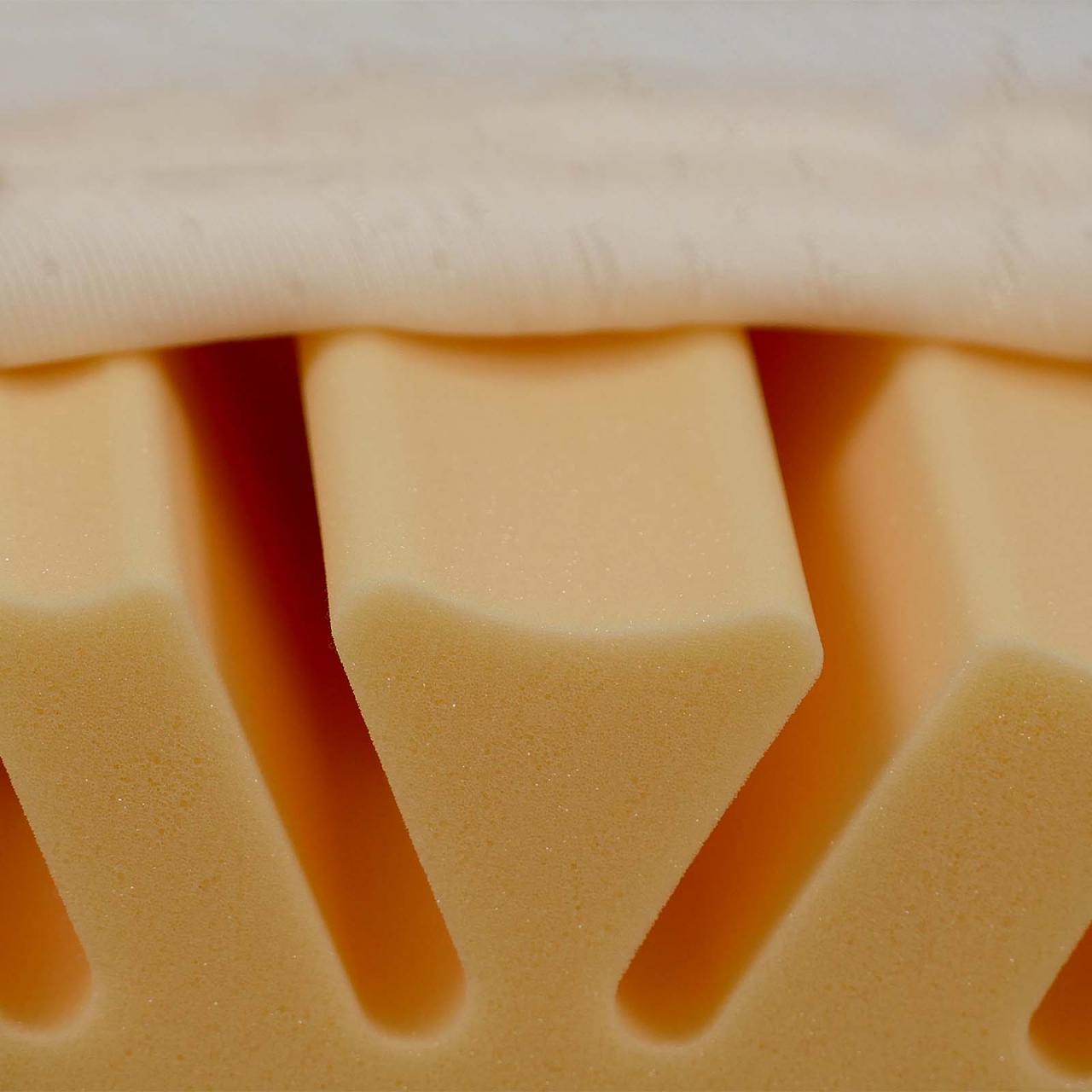 Der Schaumstoff des 3-teiligen Traktionssystem ist antiallergisch und reagiert intelligent auf Druckbelastung. Die Lamellen wirken als Klimazellen und vermindern die Transpiration während des Schlafes.